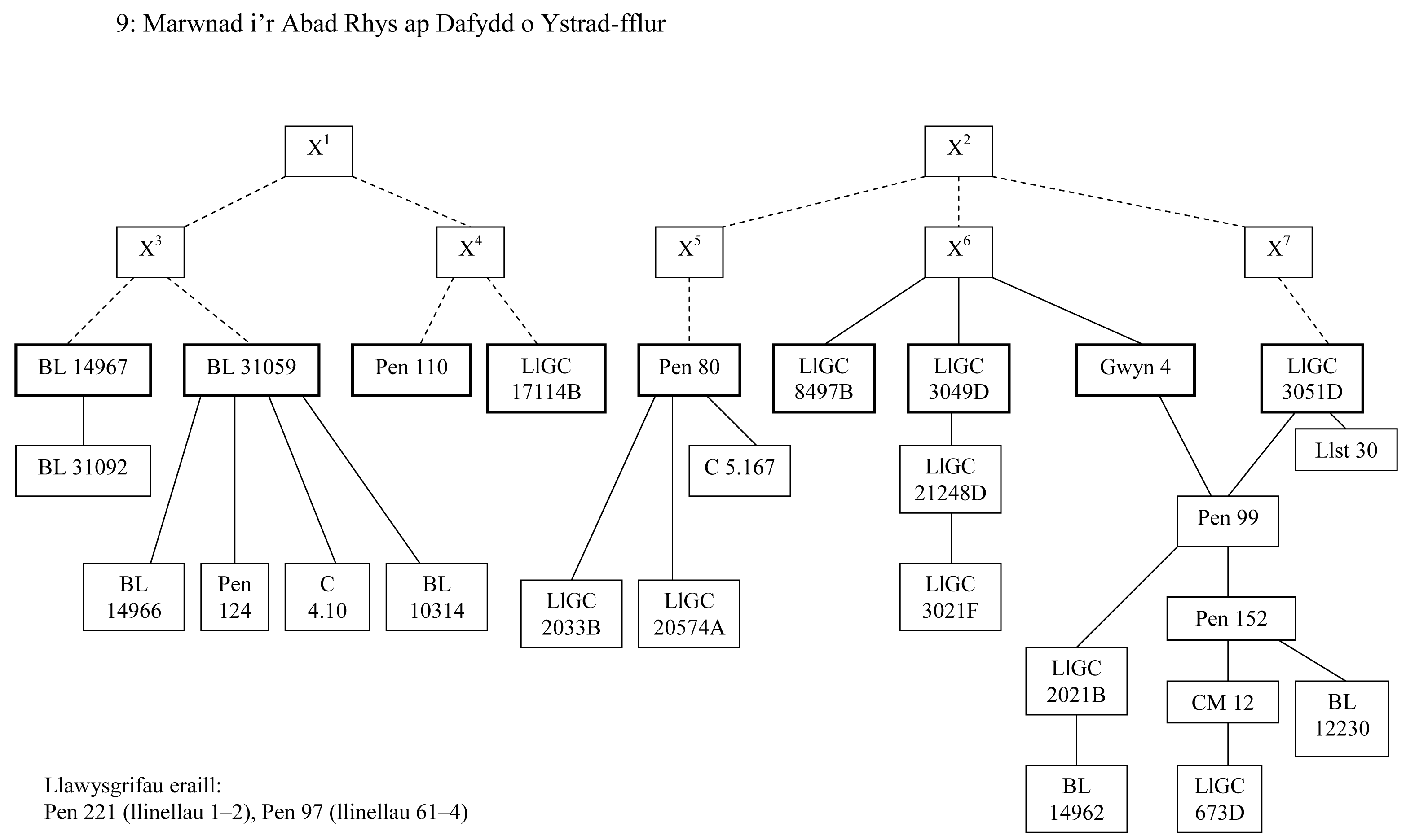 Trawsysgrifiadau: BL 14967, Pen 110, Pen 80 a LlGC 3049D.