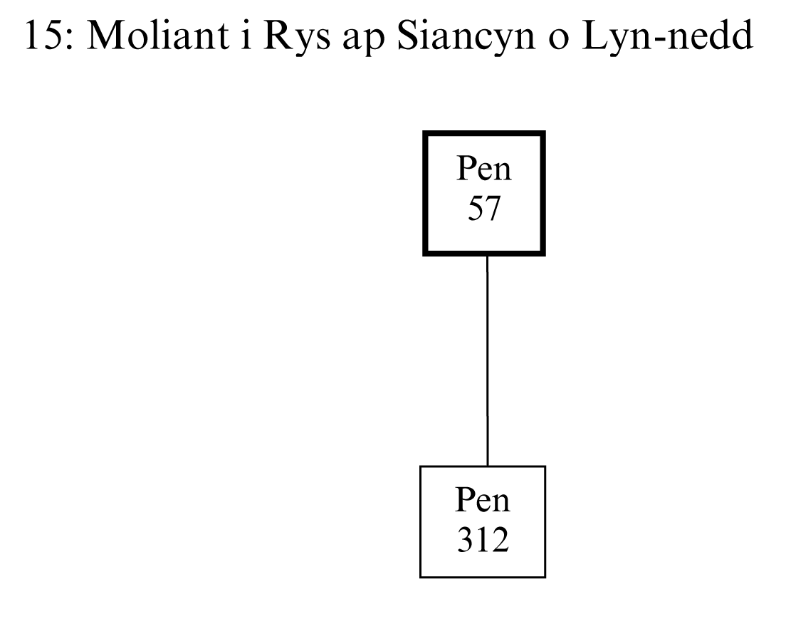 Rhys ap Siancyn ap Rhys yw gwrthrych cerdd 15. Trigai yn Aberpergwm ym mhlwyf Llangatwg, Glyn-nedd. Rhys yw’r aelod cyntaf o’i linach y gwyddom iddo noddi beirdd, a cheir cerddi eraill iddo gan Ieuan ap Hywel Swrdwal a Hywel Dafi (GHS cerdd 27; Lynch 1994: 16–17). Canodd nifer o feirdd eraill i’w fab Siôn, gan gynnwys Lewys Glyn Cothi, ac eraill eto i’w ŵyr Rhys ap Siôn (Lynch 1994; Edwards 1980–1: 193–4).