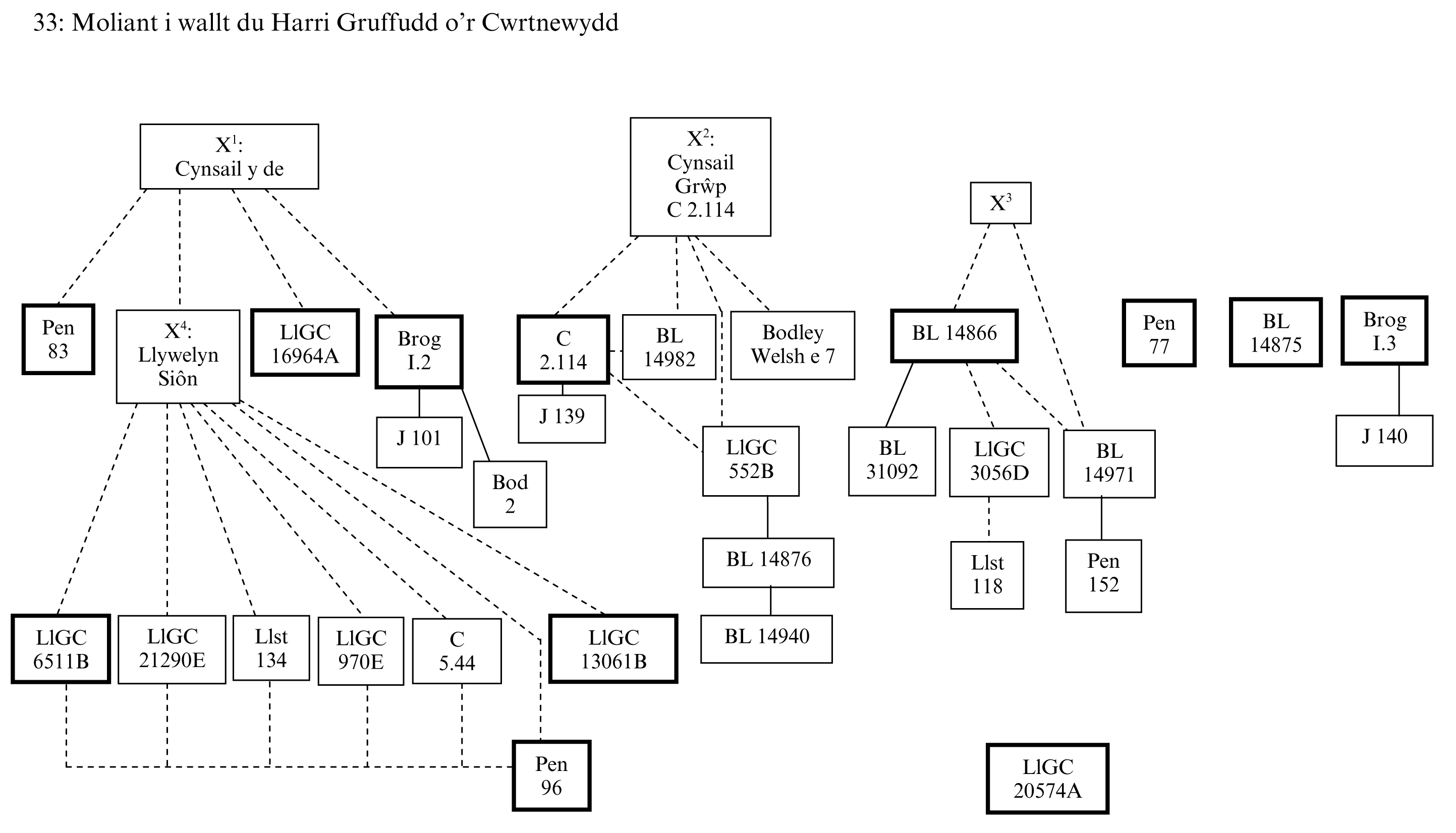 Trawsysgrifiadau: Pen 83, C 2.114, LlGC 16964A, Brog I.2, BL 14866, Pen 77.