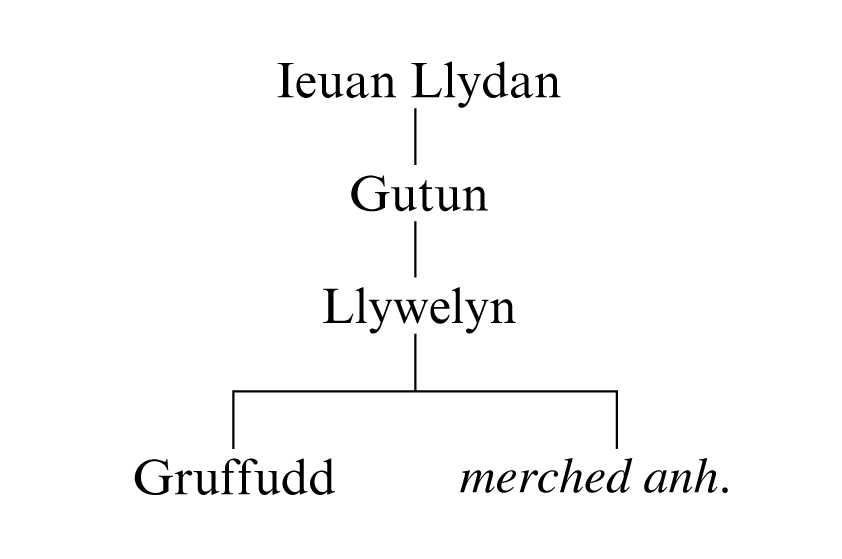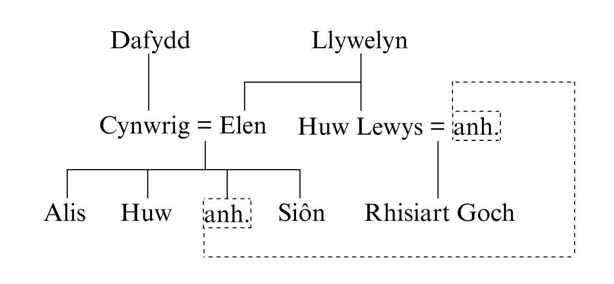 Priodas gyntaf ei chwaer, Elen, yn unig a ddangosir yn yr achres uchod, ond gwelir isod achres yn dangos ei hail briodas. Fe’i seiliwyd ar WG1 ‘Carwed’ 2; WG2 ‘Carwed’ 2 B, ‘Ednywain Bendew’ 3 B5, ‘Hwfa’ 8 C1.