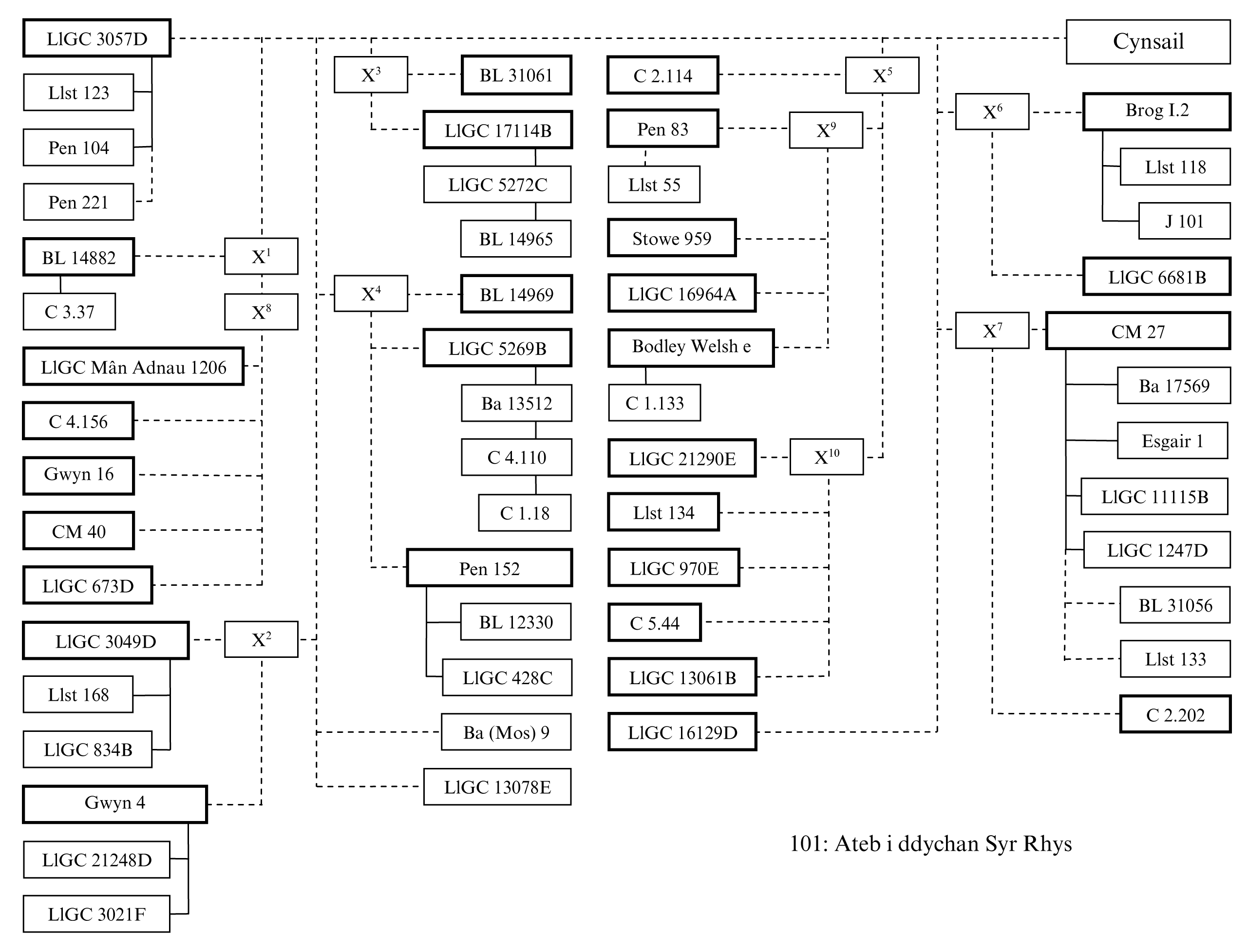 Trawsysgrifiadau: BL 14969, Brog I.2, LlGC 3049D, LlGC 3057D a LlGC 17114B.