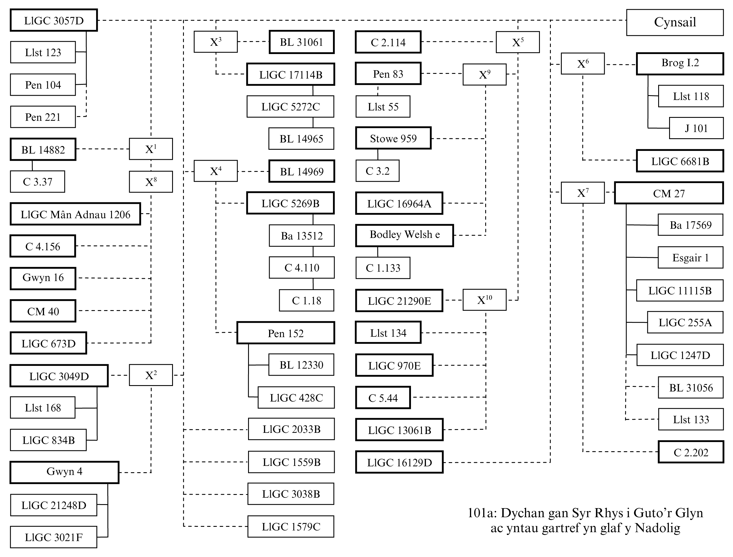 26 gul Gthg. LlGC 3057D a nifer o lawysgrifau X8 gwael, X9 ac X10 goel.