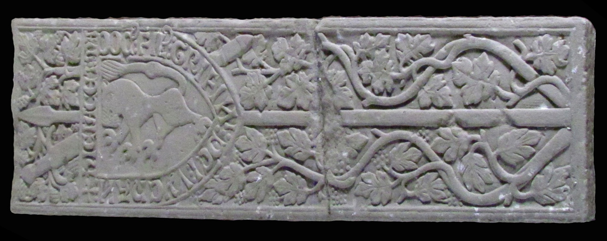 A 14th-century grave slab found at Valle Crucis abbey, depicting a heraldic shield with a sword and spear. With thanks to Brian and Moira Gittos for the image.