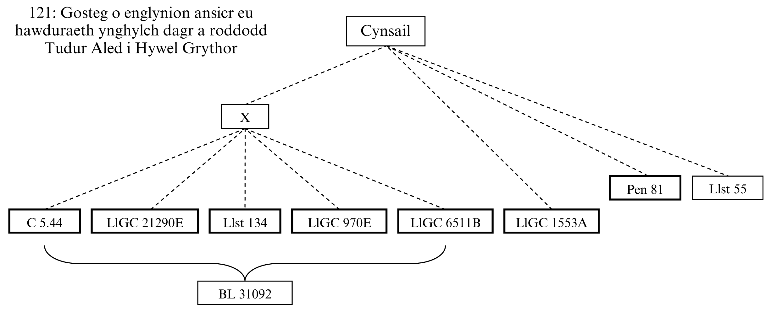 121 – Series of englynion of uncertain authorship concerning a dagger given to Hywel Grythor by Tudur Aled